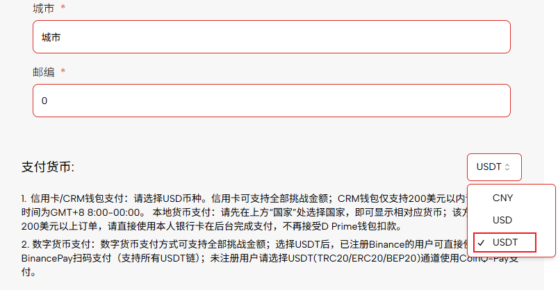 - في صفحة الدفع "أمة" حدد البلد وولاية العملة التي ترغب في الدفع بها عملة الدفع حدد العملة المقابلة من القائمة المنسدلة (على سبيل المثاليوان صيني).