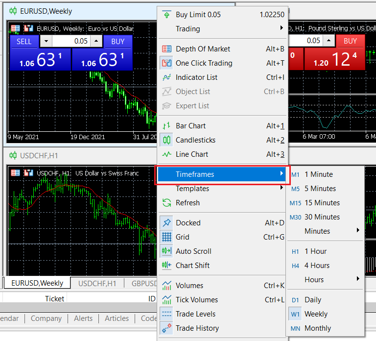 3.6.3 كيفية عرض الفترة الزمنية لمنصة MT5