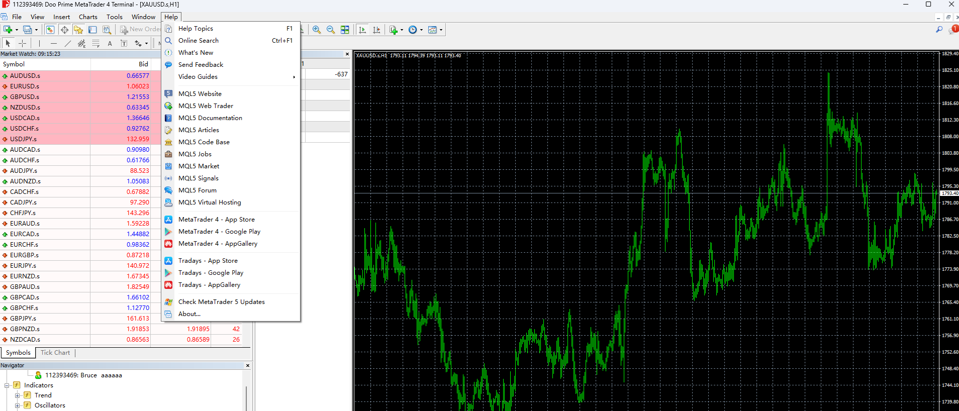 1. Después de iniciar sesión en MT4, haga clic en "Ayuda" en la barra de menú superior y seleccione "Acerca de".