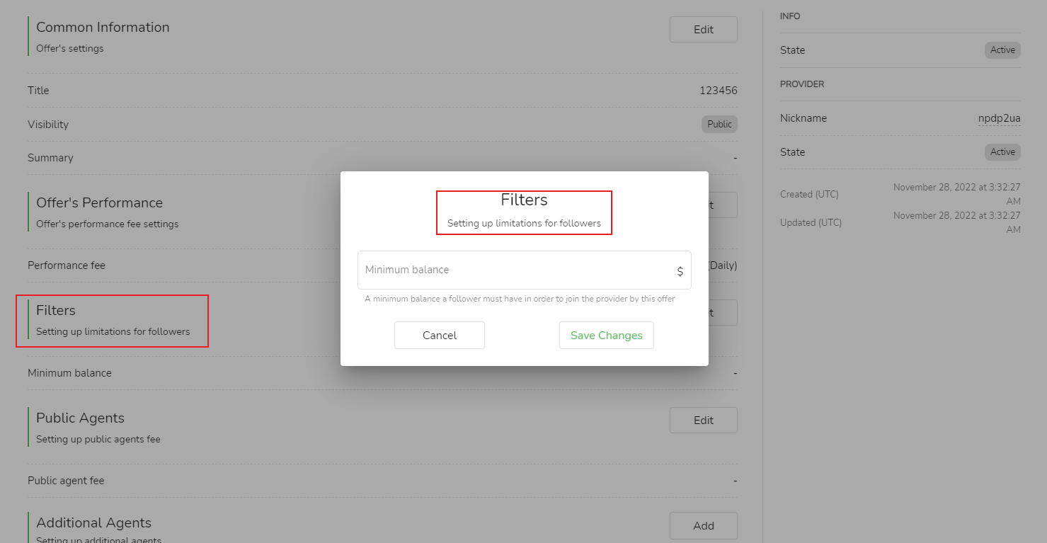 - Taxa de Taxa de Desempenho:Preencha a taxa de participação nos lucros (até 80) incluída nas condições de cópia.