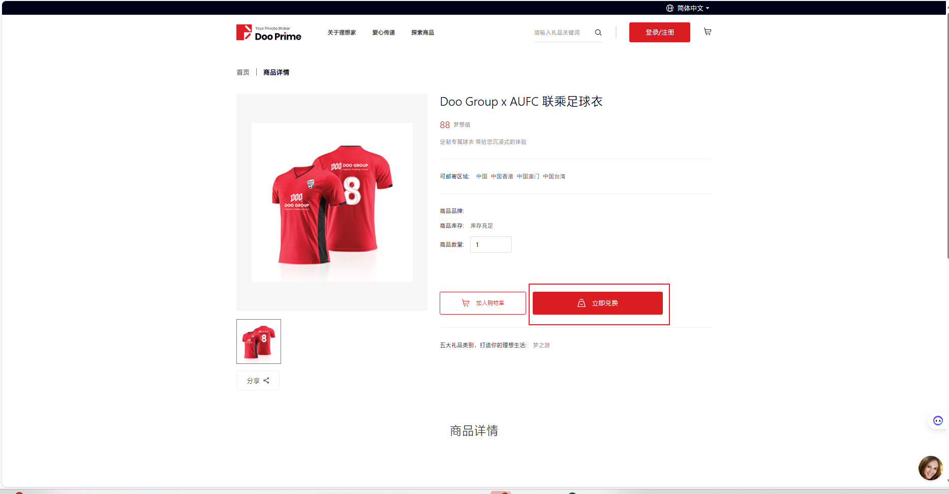 - 選擇心儀禮品及其規格,點選「立即兌換」