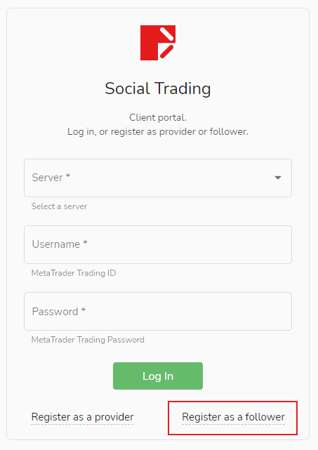 - người phục vụ:Chọn máy chủ (xin lưu ý, CopyTrading hiện hỗ trợ các tài khoản máy chủ MT4-Live1, MT4-Live3, MT4-Live4, MT4-Live5 và MT4-Live6)