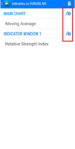 Chọn loại tương ứng (ở đây, lấy đồng euro và đô la làm ví dụ), nhấp vào nút của biểu đồ hình nến và chọn nút chỉ báo "f".